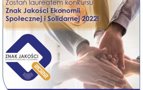 Ogłoszony został nabór wniosków w konkursie Znak Jakości Ekonomii Społecznej i Solidarnej 2022! Znak Jakości Ekonomii Społecznej i Solidarnej jest przyznawany w następujących kategoriach:I. Debiut roku II. Najlepszy pracodawca III. Sukces rynkowy IV. Pożyczka z korzyścią społeczną V. Społecznie odpowiedzialny samorząd. Dla laureatów konkursu przewidziano nagrody w postaci:a) pakietów doradczo-szkoleniowych o wartości od 10 000 zł (dla kategorii I–IV),b) zagranicznej wizyty studyjnej lub wyposażenia związanego z prowadzeniem działalności (w zależności od sytuacji epidemicznej),c) produkcji filmów o działalności laureatów,d) udziału w targach branżowych. Konkurs o przyznanie certyfikatu Znak Jakości Ekonomii Społecznej
